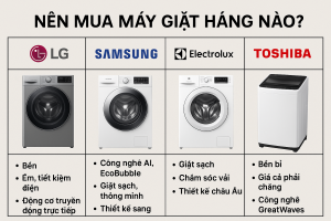 Bạn đang băn khoăn không biết nên mua máy giặt của hãng nào tốt, bền, tiết kiệm điện và giặt sạch nhất năm 2025? Bài viết này sẽ giúp bạn so sánh chi tiết ưu nhược điểm của 10 thương hiệu hàng đầu như LG, Samsung, Toshiba, Electrolux, Panasonic, Aqua… để lựa chọn phù hợp với nhu cầu gia đình.